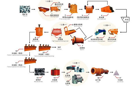 鐵礦選礦工藝流程包括破碎、篩分、磨礦、分級和選別作業(yè)。鐵礦石的選礦方法有磁選、重選、浮選、電選等,其中磁選工藝應(yīng)用最廣。不同鐵礦石選別方法不一。